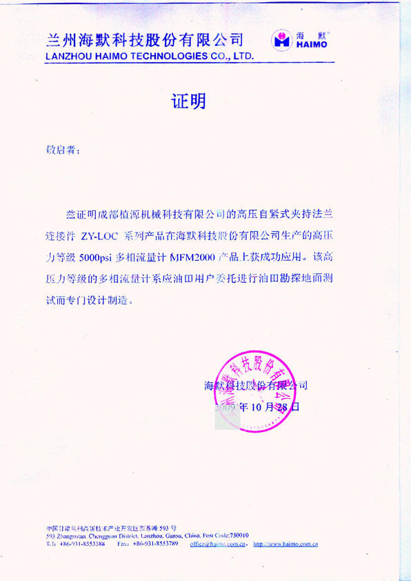 華強(qiáng)化工集團(tuán)股份有限公司使用證明