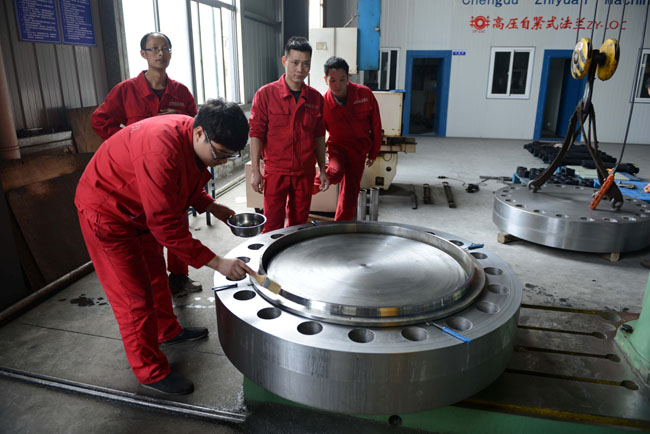 針對(duì)加氫反應(yīng)器大口徑DN900法蘭所作專門的設(shè)計(jì)、研究和高于國(guó)家標(biāo)準(zhǔn)的強(qiáng)度、氣密性試驗(yàn)的成功,再一次證明ZY-loc完全能夠勝任各種復(fù)雜工況的使用條件。