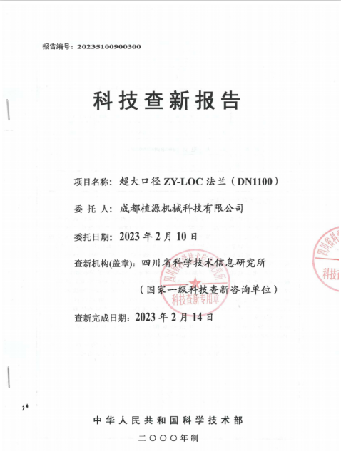 超大口徑ZY-LOC法蘭(DN1100)科技查新報(bào)告